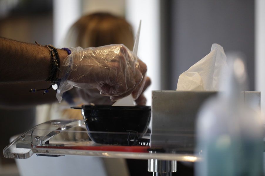 Le salon de coiffure s'articule en parties, le coin technique et la salle d'eau donnant sur une petite terrasse à la végétation méditerranéenne.